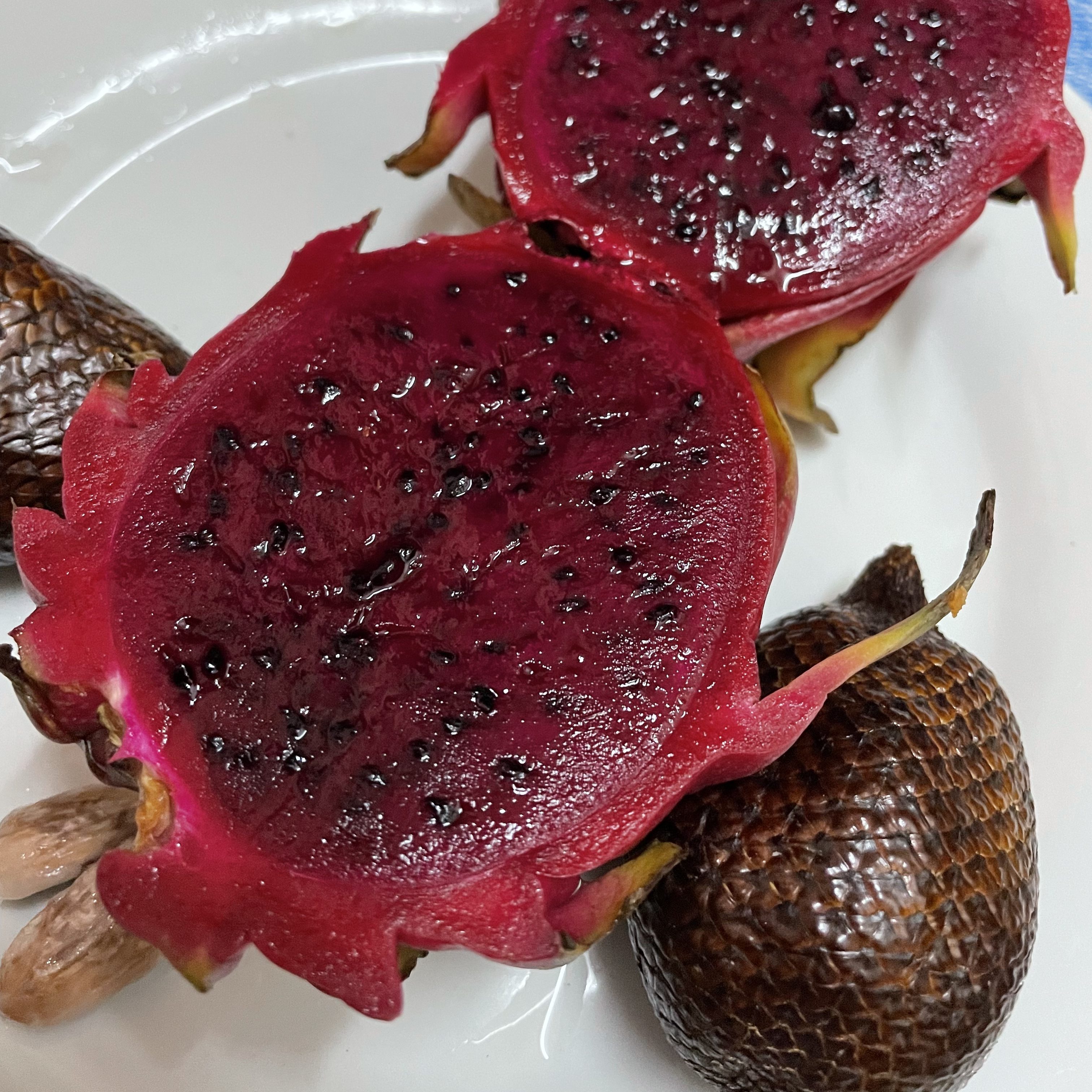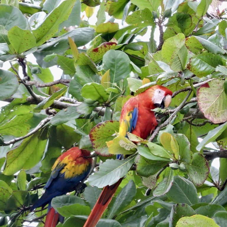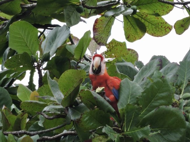 Later in the week I went back to Uvita with some friends for the day. We went to a local market and did some shopping (I did in fact buy more jewelry), we tried locally made kombucha and we bought red dragonfruit, cacao (the fruit used to make chocolate!) and another fruit that looked like a snake skin covered egg (called a Salak) to try. After the market we got falafel for lunch (which was phenomenal), and then headed to the beach for the afternoon until the rain started. When we headed out for lunch we saw some scarlet macaws fly over, and of course chased their path down the street so that we could get photos of them (worth it).