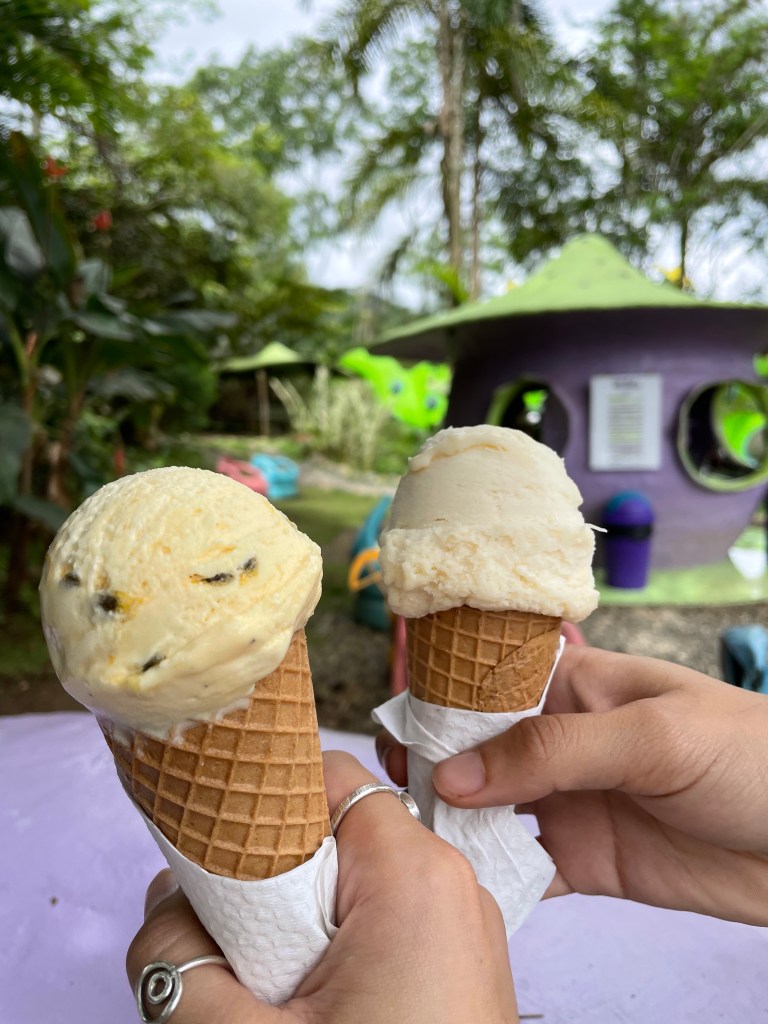 This week I saw two monkeys (and got a photo of one–finally!) and of course, some more cool birds. On Sunday, my friend Vanessa and I took a tour at Coffea Diversa, a coffee plantation about an hour away from the station. Coffea Diversa is unique because unlike many other coffee plantations, they grow, harvest, dry, roast and ship all of their coffee on site. We were able to tour the plantation and see all of the stages that coffee goes through to make it from fruit to the roasted bean we use to make our morning coffee. They also have ‘coffee basket’ shaped cabins for students, researchers and tourists to stay in, all made out of recycled materials (stay tuned for more about my trip to Coffea Diversa!). Afterwards, we were served a delicious lunch and dessert (and of course tried some amazing coffee). We ended the day with some fresh ice cream and headed back to the station.